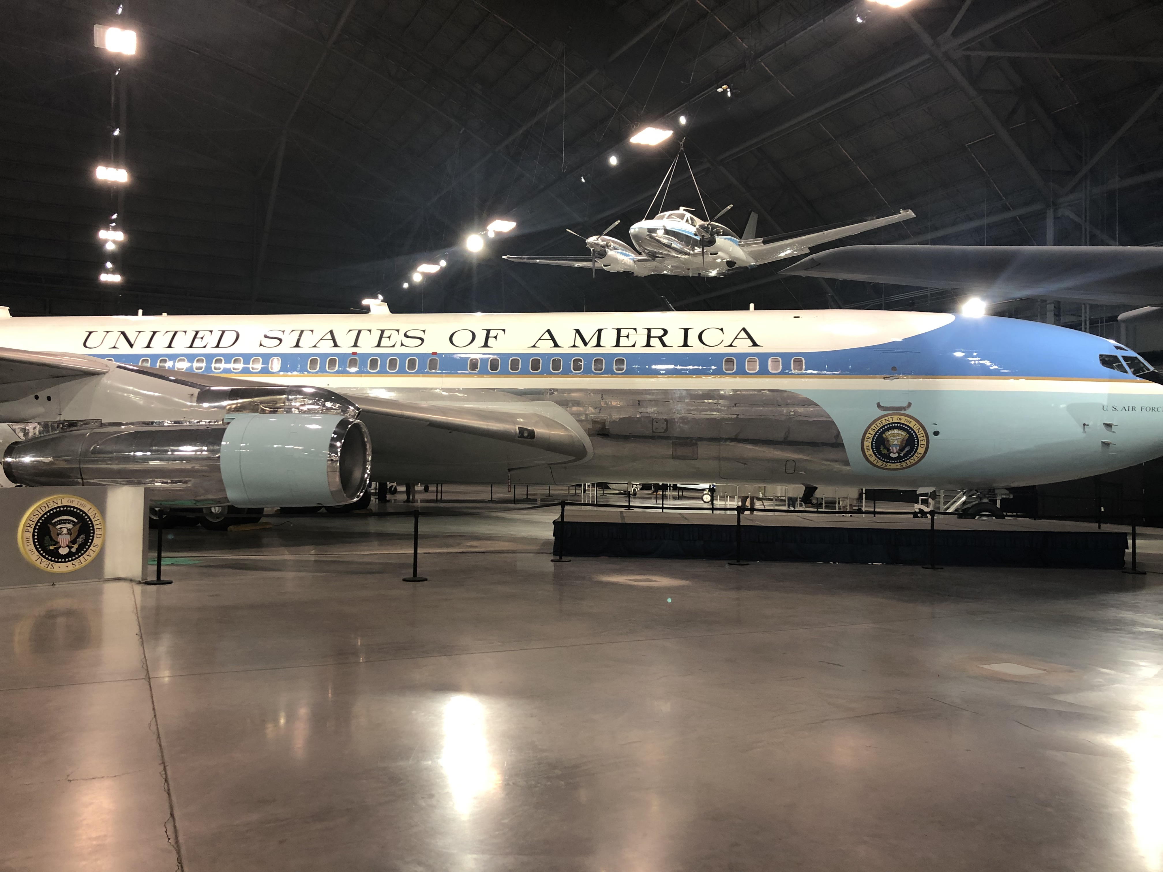 Then we drove to Wright Patterson AFB to visit the Air Force museum. We got to see Apollo 11 on the IMAX screen, and spent a couple hours looking around. A nice surprise was Dan finding his jacket in the gift shop! The one he has now is wearing out, and we were going to visit the shop in New York so he could drop it off to get it repaired. He couldn’t believe it was the same jacket.