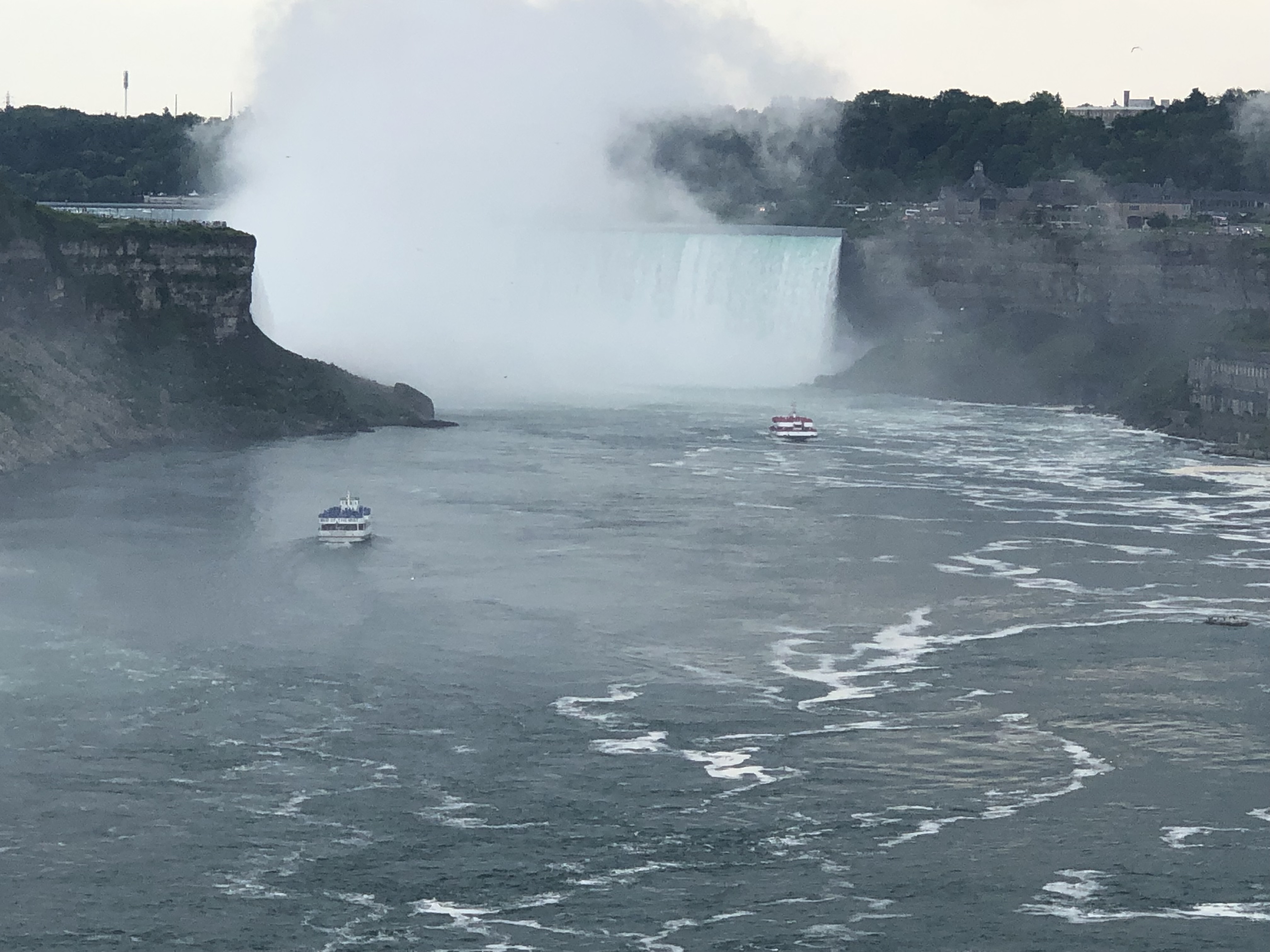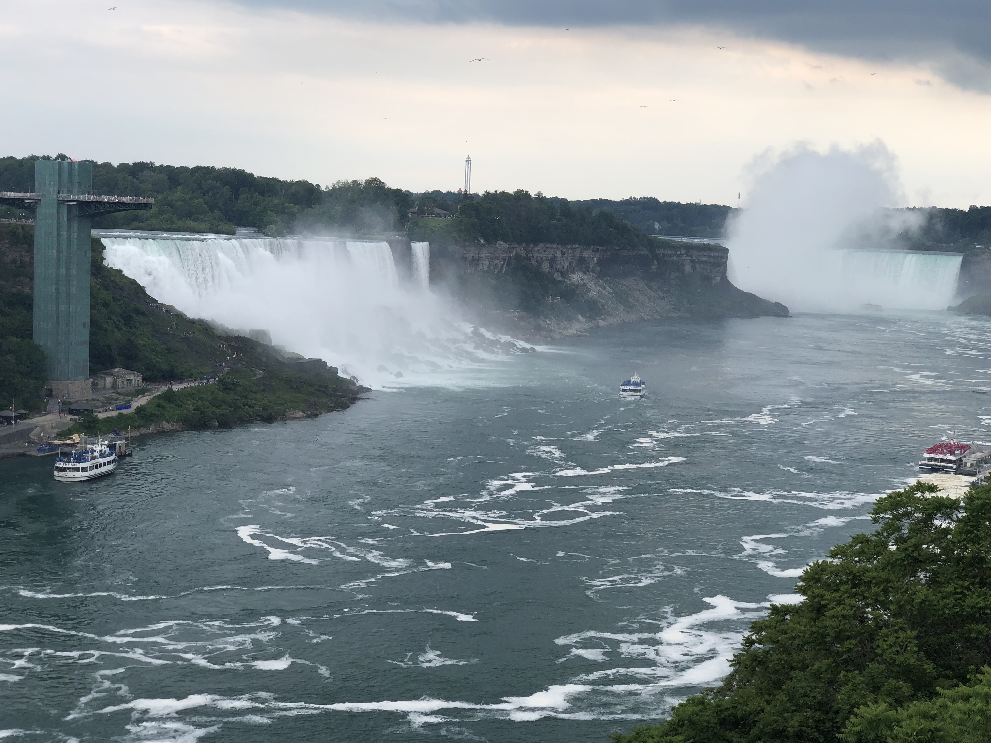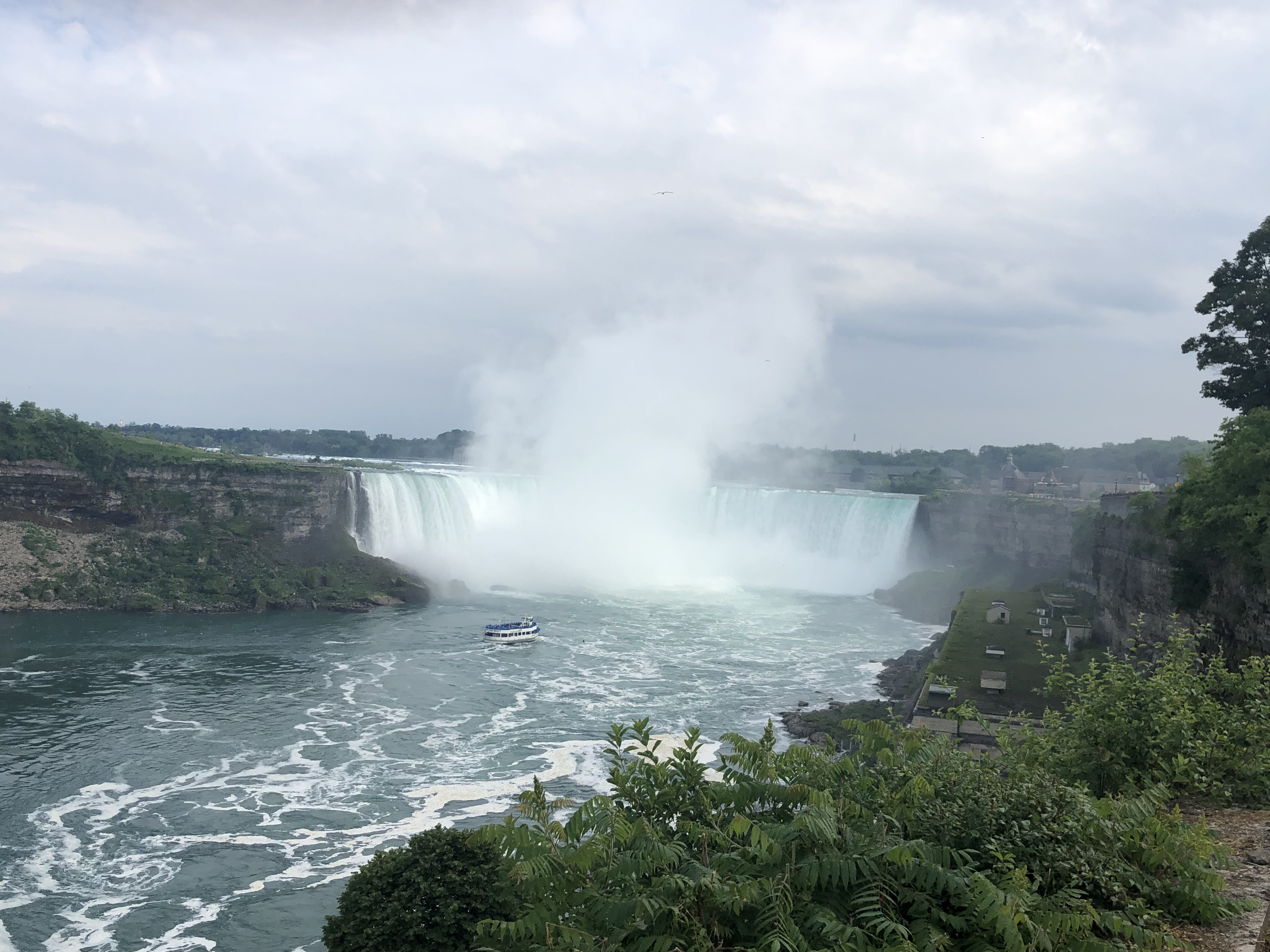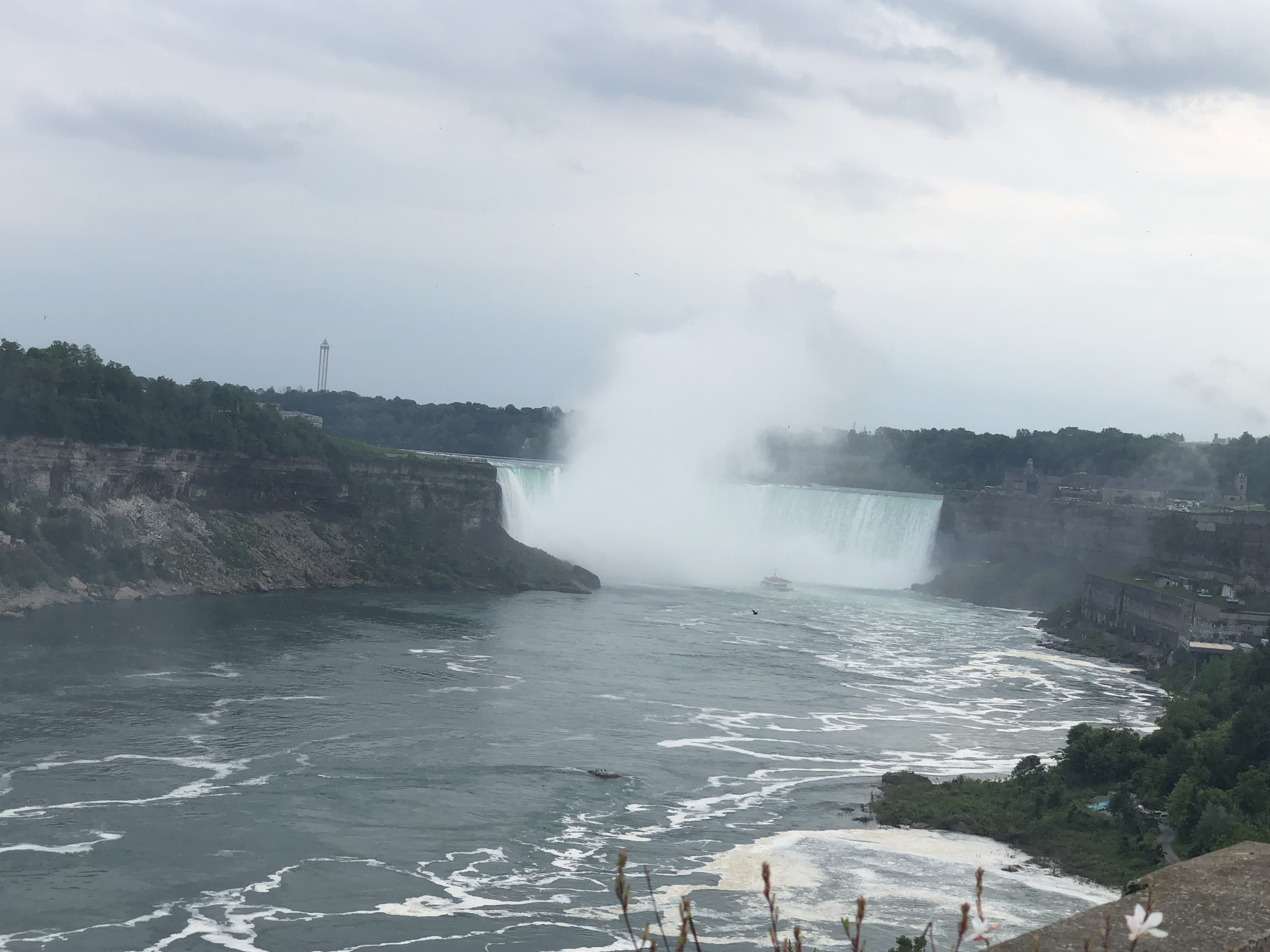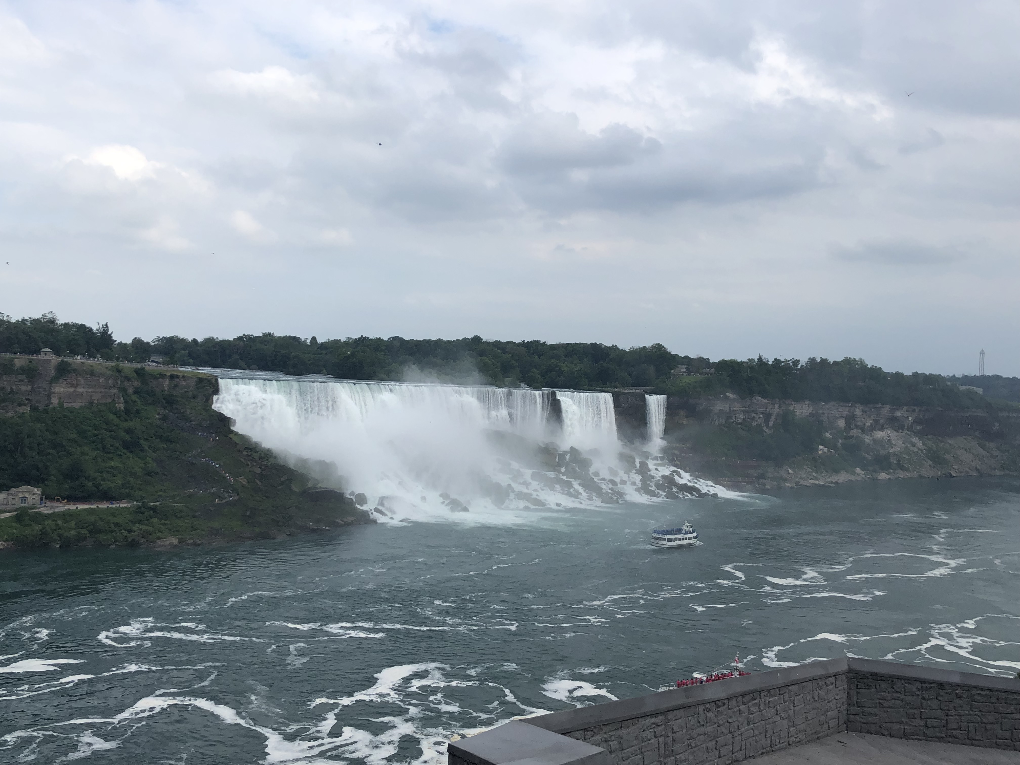 I loved Niagara Falls when we were there in 2016, but they were doing a lot of construction on the American side (Goat Island), and we weren’t able to see everything. We also drove across to the Canada side in 2016 to continue our trip. This time I wanted to walk across the Rainbow Bridge. I have to admit our travels are making me not quite as scared of heights as I used to be. It was pretty overcast when we arrived Wednesday afternoon, but the views were still spectacular. We walked to the Canada side, took the Maid of the Mist boat ride, and I walked up to the falls afterwards before we called it a night.