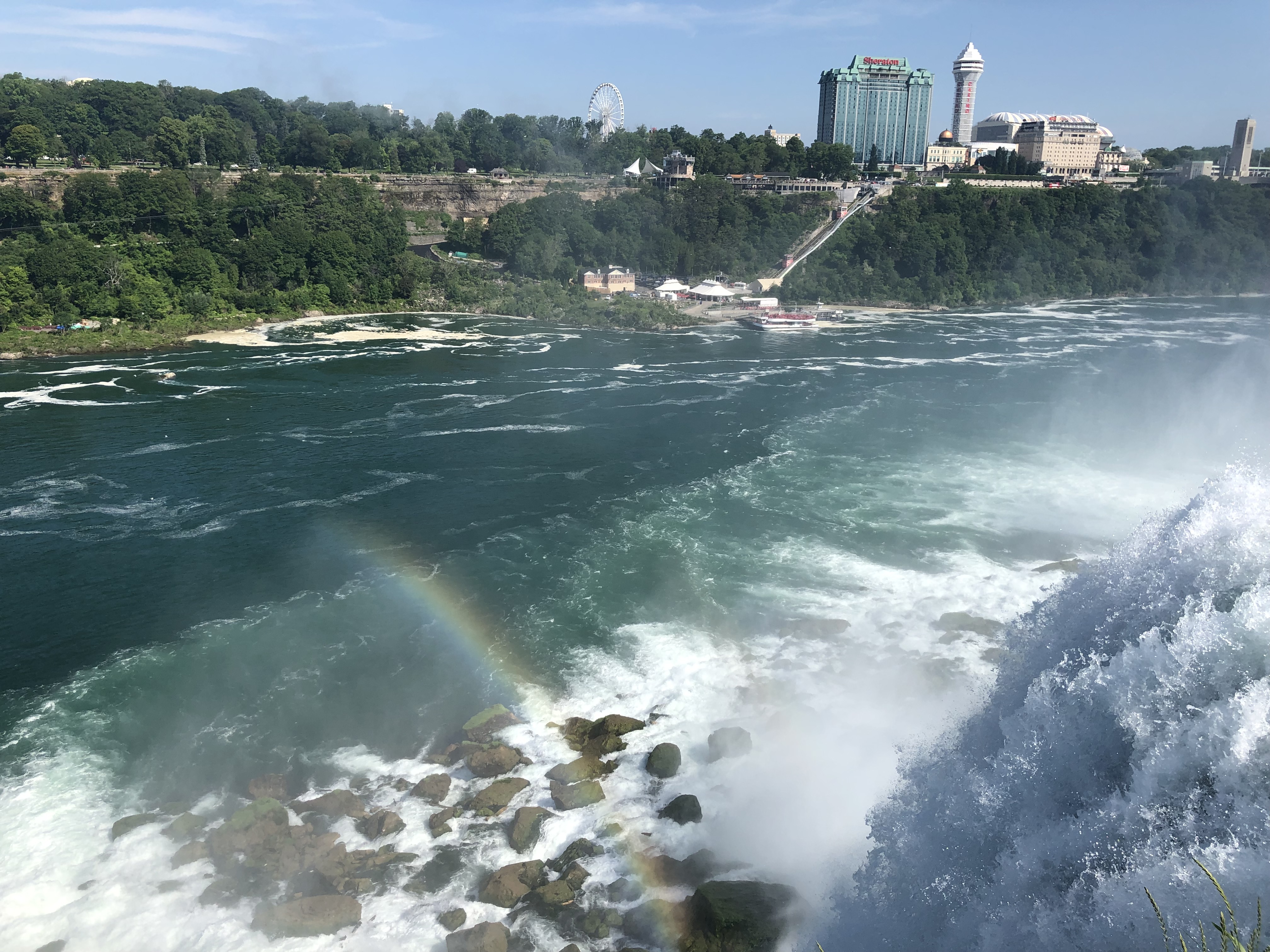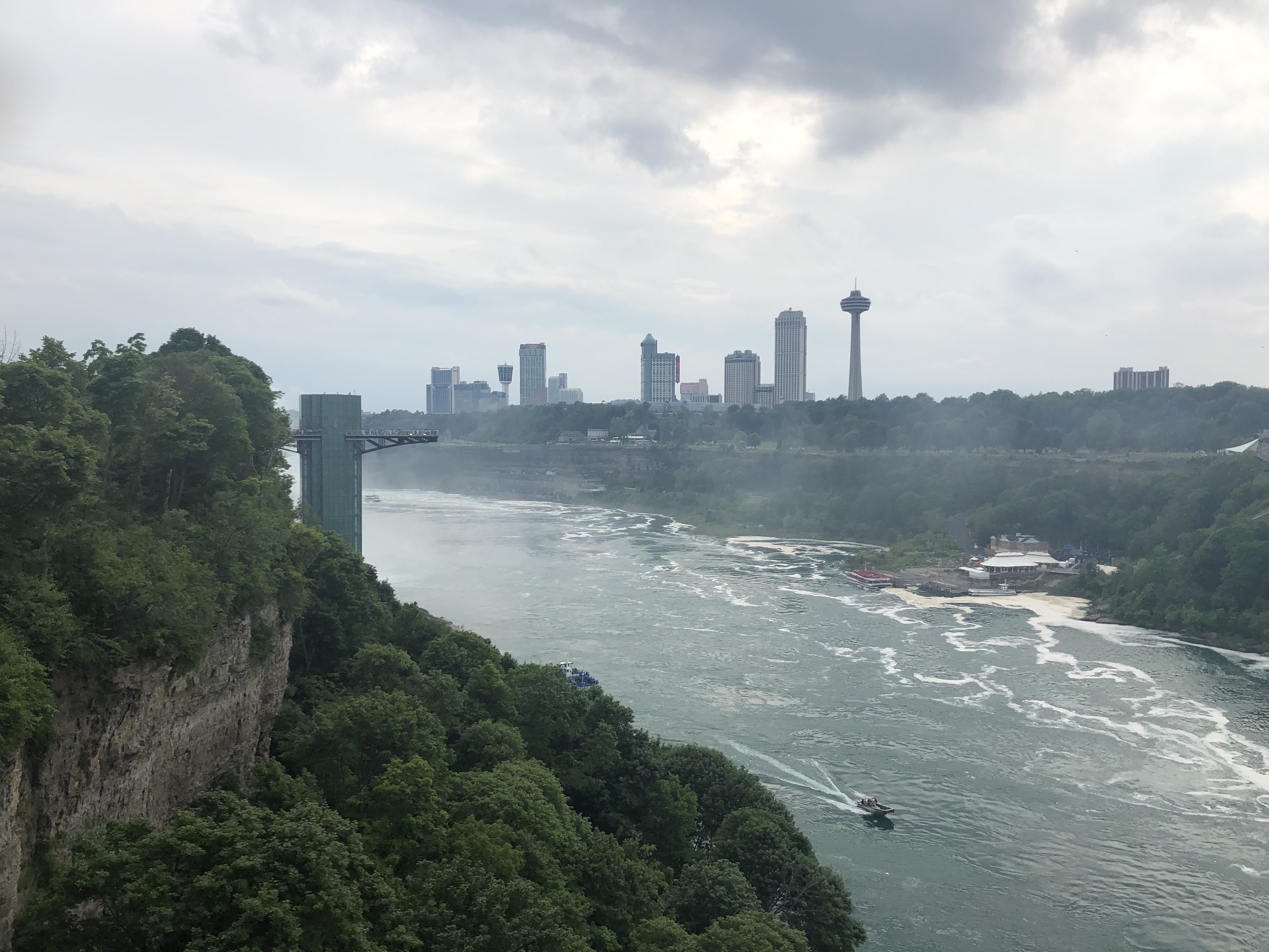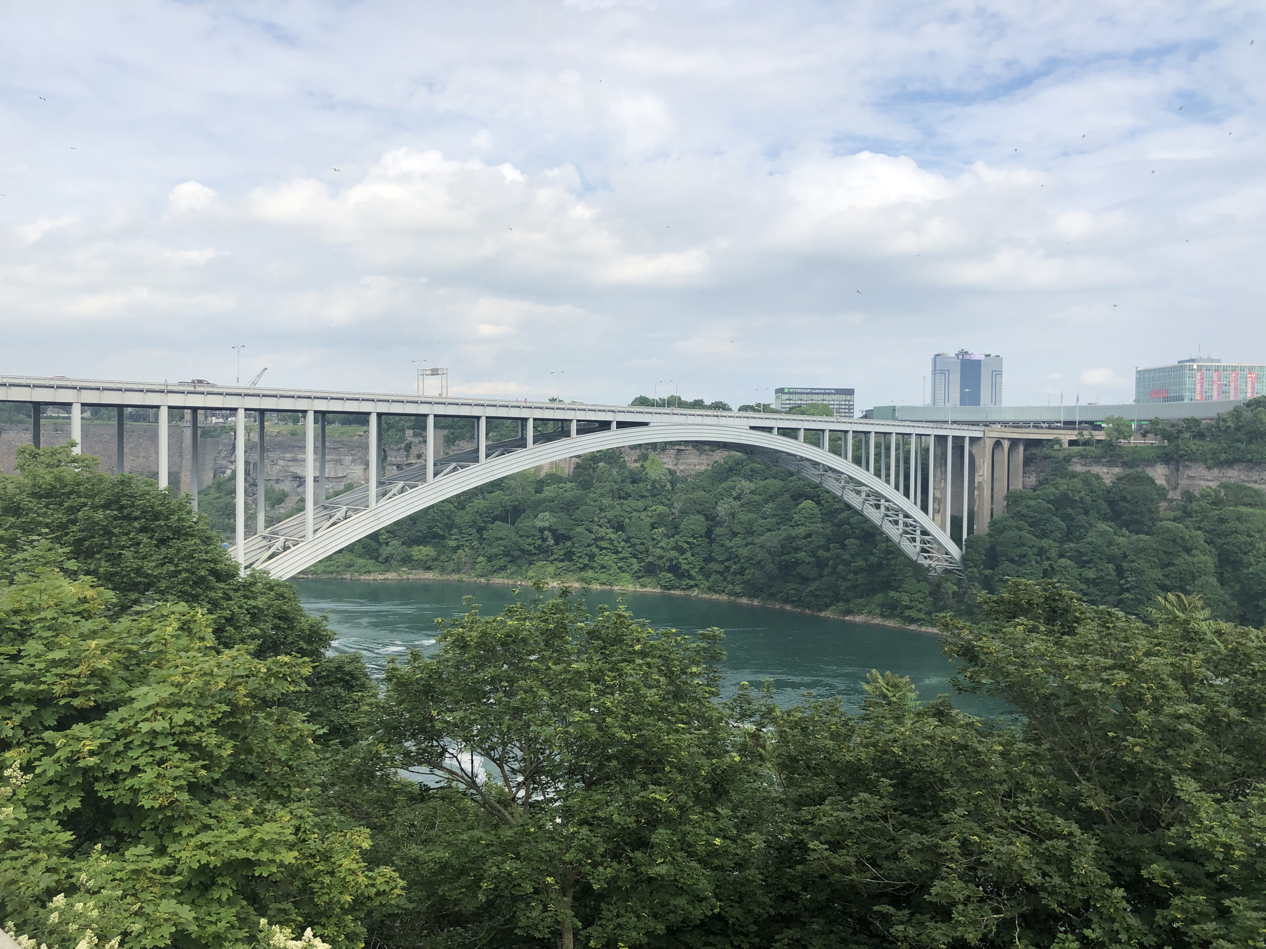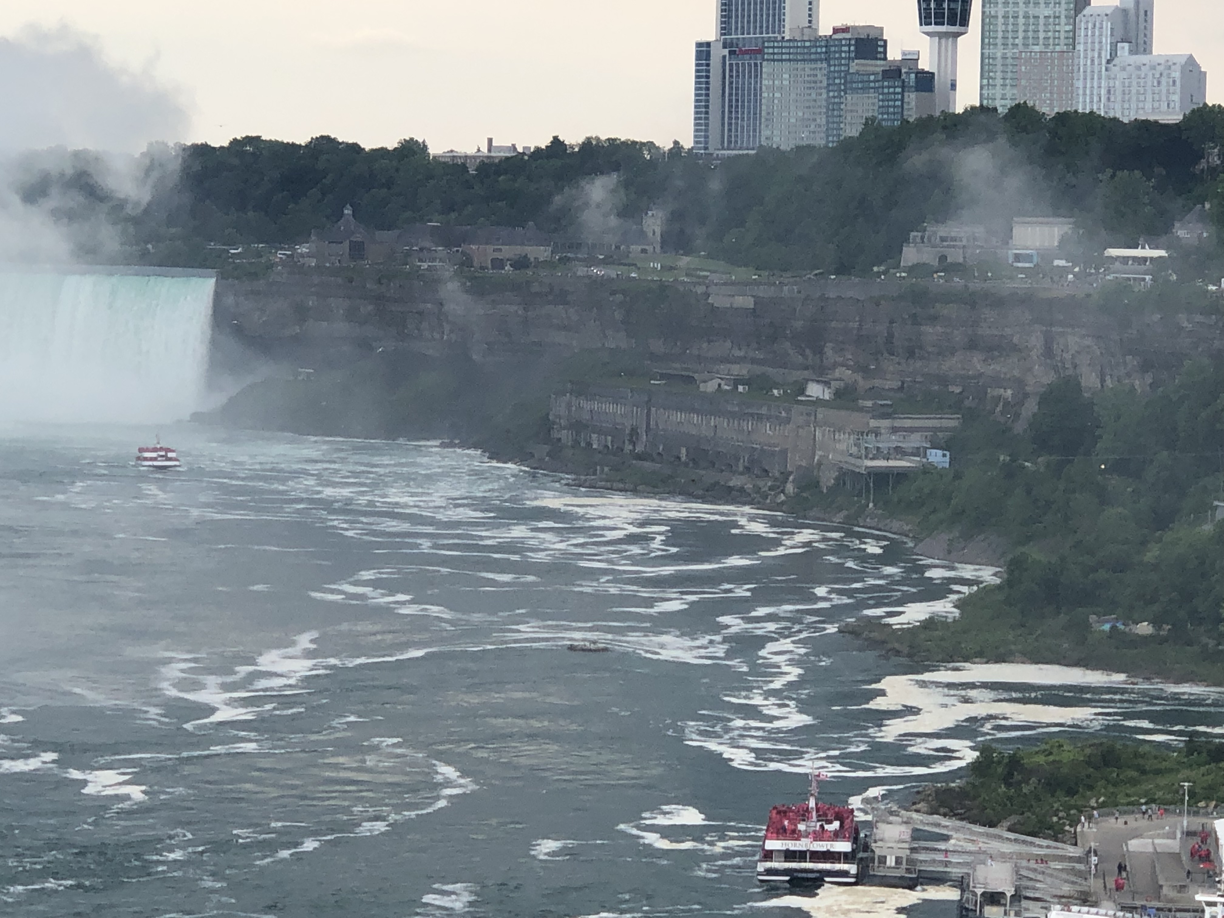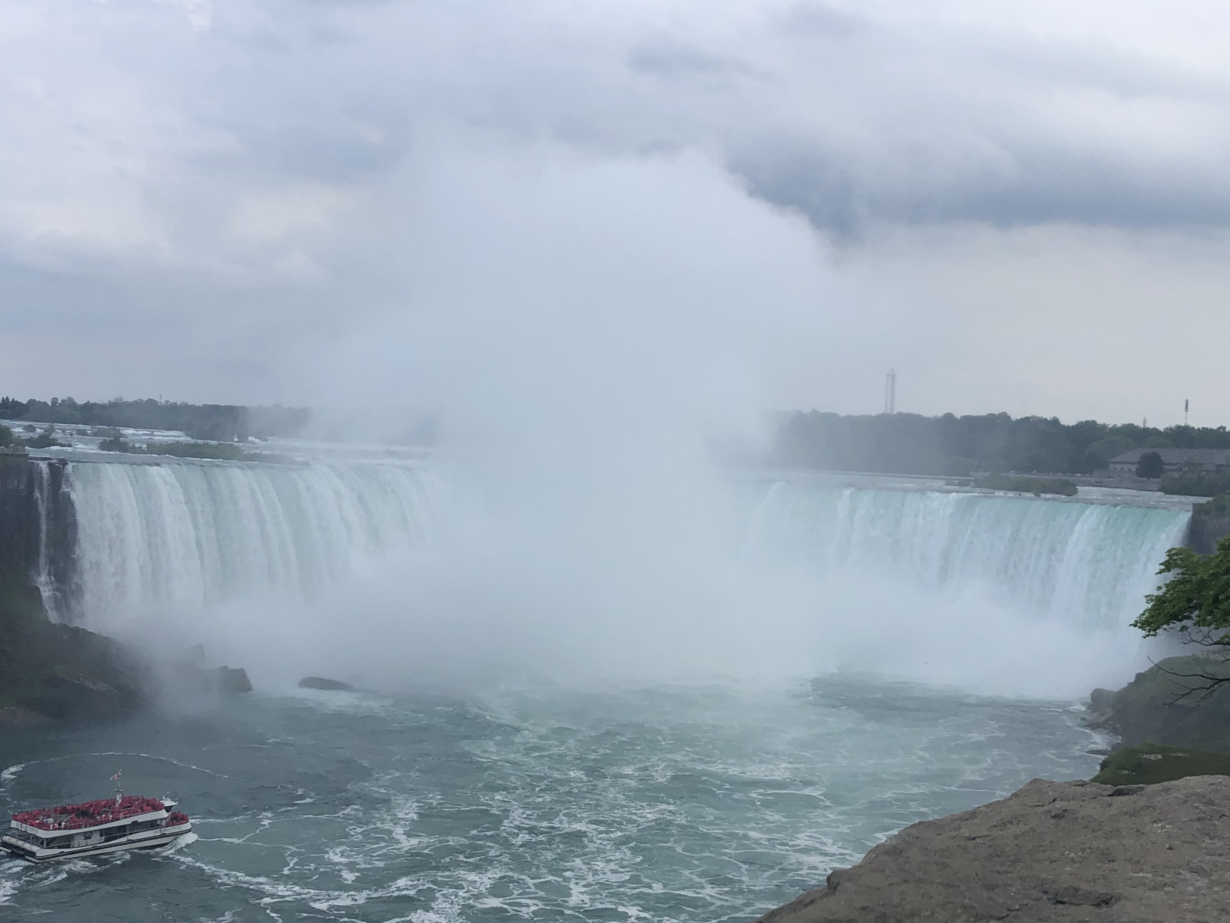I loved Niagara Falls when we were there in 2016, but they were doing a lot of construction on the American side (Goat Island), and we weren’t able to see everything. We also drove across to the Canada side in 2016 to continue our trip. This time I wanted to walk across the Rainbow Bridge. I have to admit our travels are making me not quite as scared of heights as I used to be. It was pretty overcast when we arrived Wednesday afternoon, but the views were still spectacular. We walked to the Canada side, took the Maid of the Mist boat ride, and I walked up to the falls afterwards before we called it a night.
